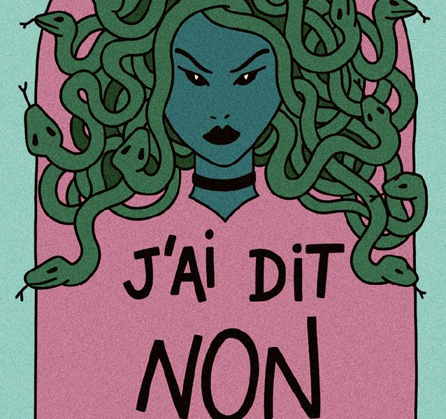 On nous demande régulièrement pourquoi avoir choisi Méduse comme figure de la carte “J’ai dit non“. Partant d’un mythe misogyne où Méduse est décrit tour à tour comme victime impuissante ou monstre maléfique, Méduse est petit à petit devenue une icône féministe qui renverse les tropes, ces clichés narratifs sexistes. Alors que la société et les hommes n’ont de cesse de l’objectifier, Méduse affirme son rôle de sujet actif, désirant et agissant. Du “male gaze“, on passe au “female gaze“. Et face aux personnes qui l’objectifient via le regard porté sur elle, elle les transforme en retour en statue de pierre, soit littéralement… en objet !